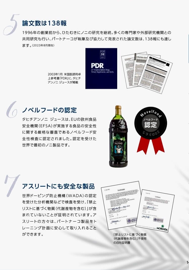 ご安心ください。当方からネットワークビジネスへお誘いすることはございません。日本ではマイナスイメージのネットワークビジネスですが、パートナーコ製品はとても素晴らしいです。だからこそロングセラーで広がっています。このサイトは【タヒチアン ノニの素晴らしさ】【パートナーコ製品のご紹介】【パートナーコ製品のご購入】【製造販売するパートナーコ・ジャパン合同会社】をお知らせしています。