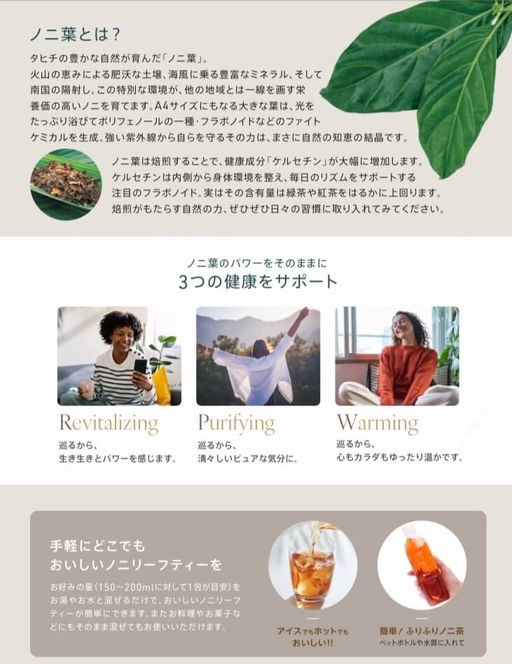 Morinda®(モリンダ®)、TahitianNoni®(タヒチアンノニ™)、TeMana®、HIRO、はパートナーコ・インターナショナルLLCの商標です。© Partner.Co International LLC. Used with permission. All rights reserved.